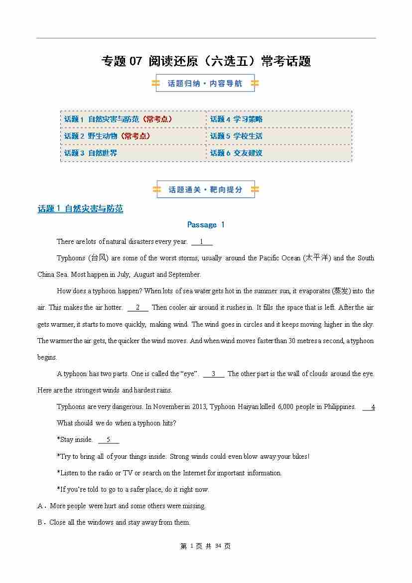 考前押题03 阅读还原(六选五)常考话题(学生版)