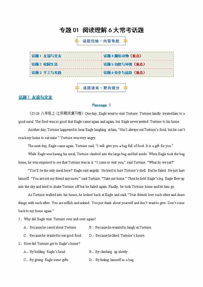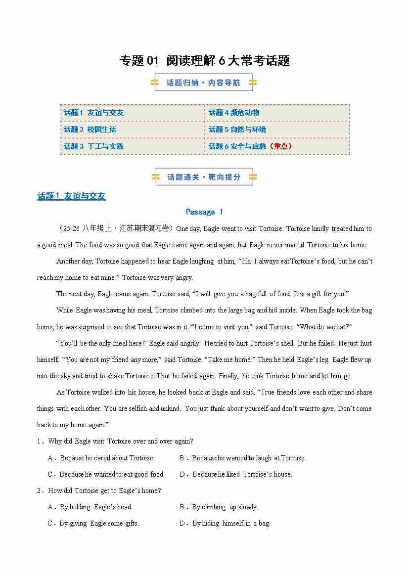 考前押题04 阅读理解6大常考话题(期末复习专项训练)(学生版)