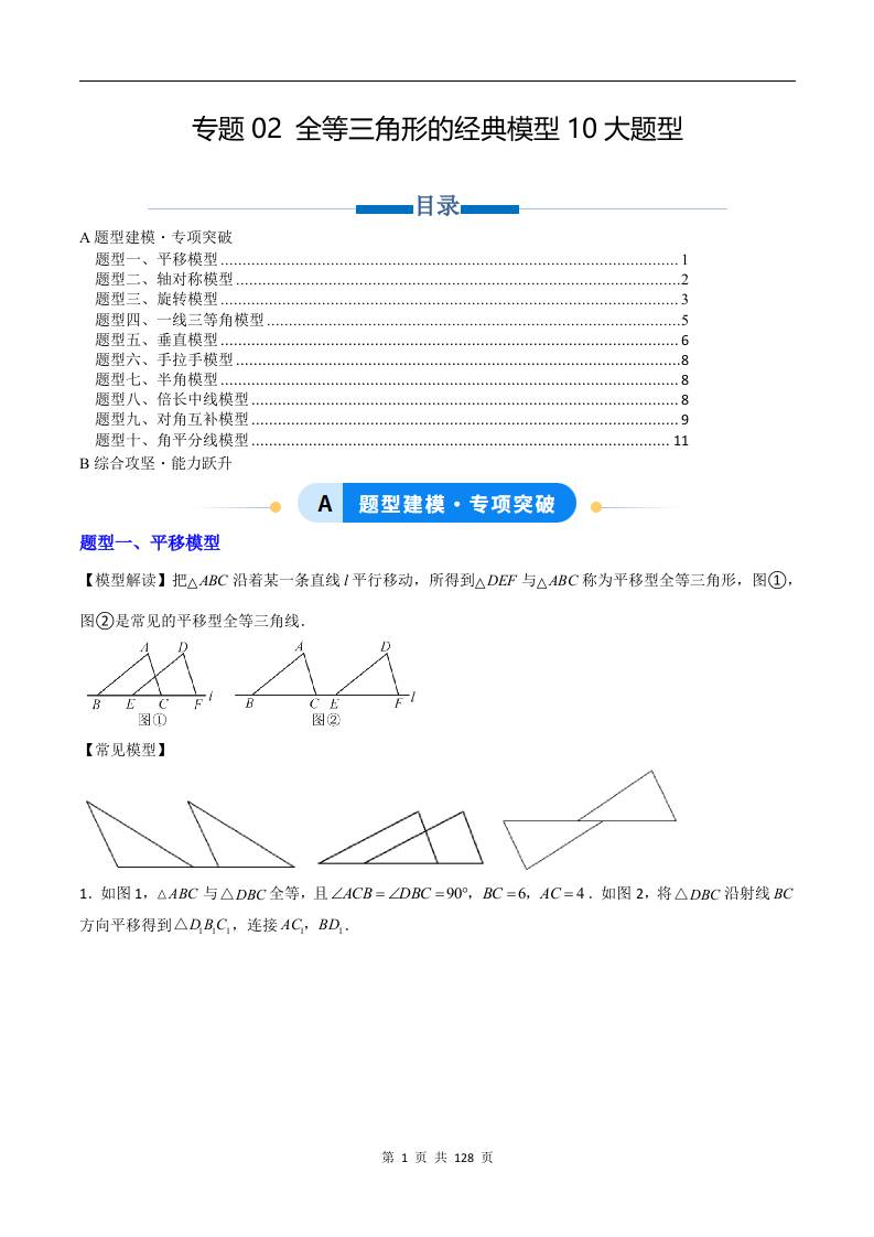 专题02 全等三角形的经典模型10大题型(专项训练)(原卷版)