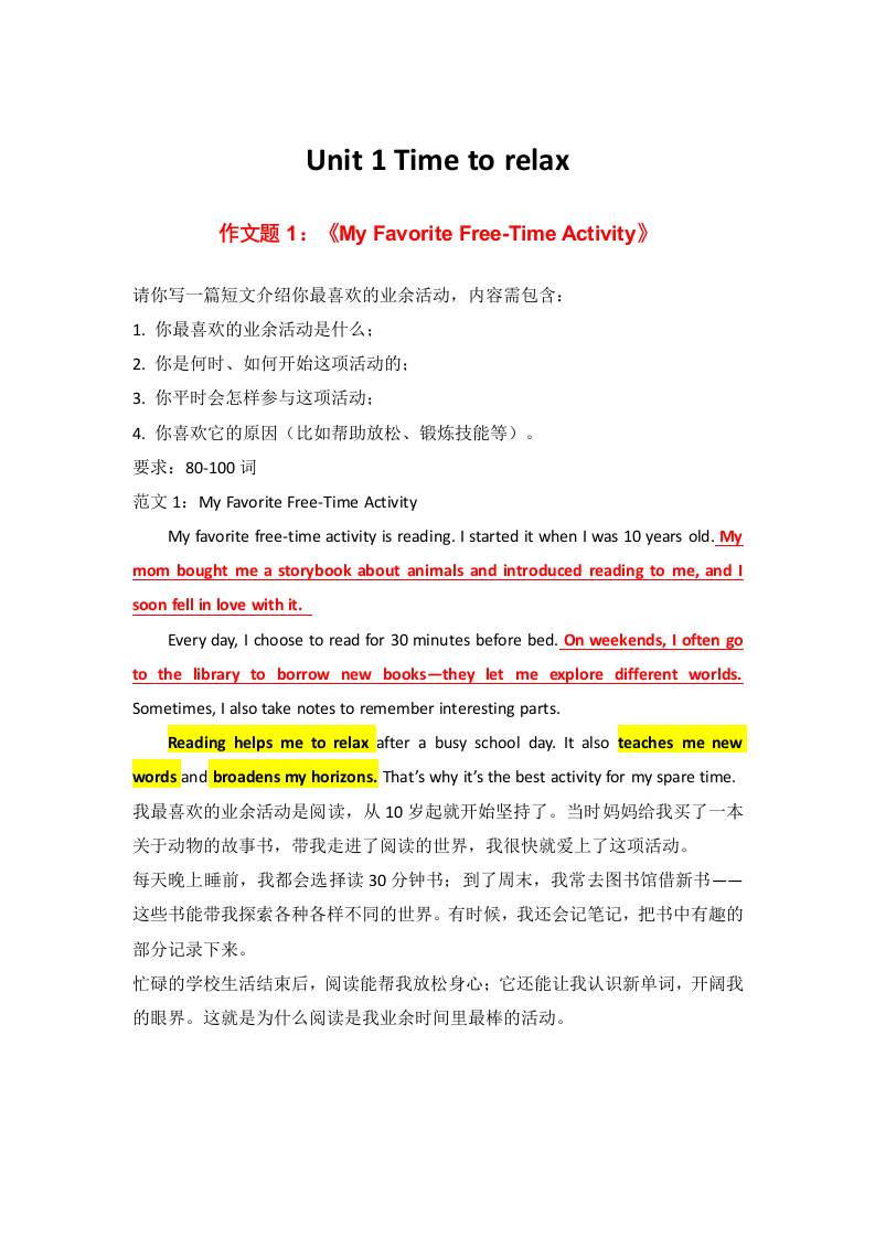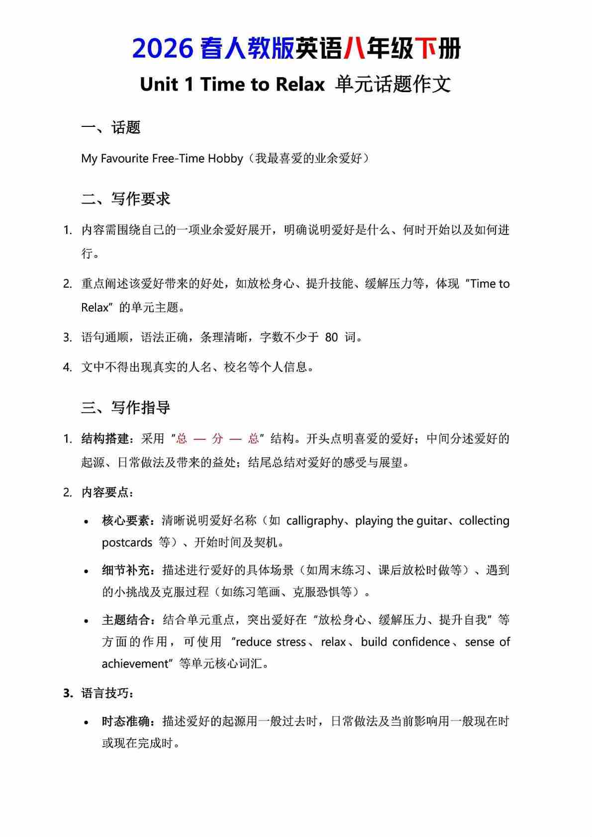 人教版八年级下册英语第一单元作文写作点拨与范文指导