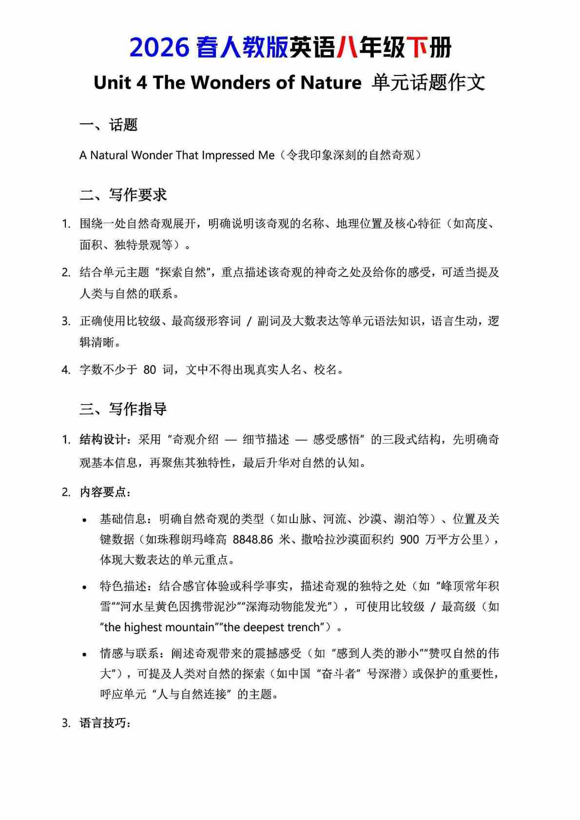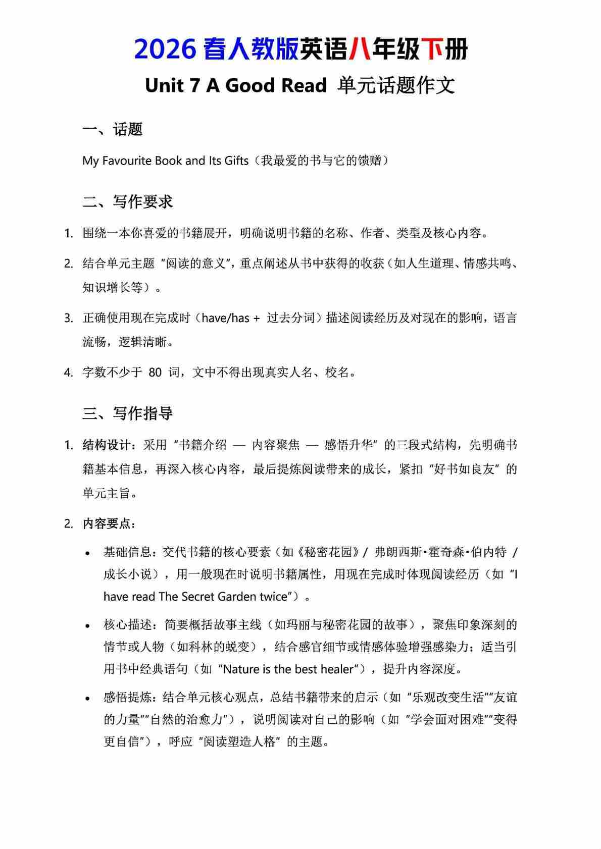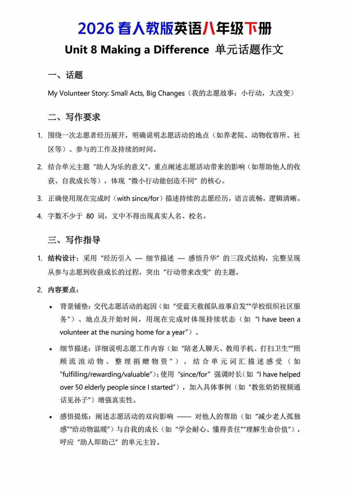 人教版八年级下册英语第八单元作文写作点拨与范文指导