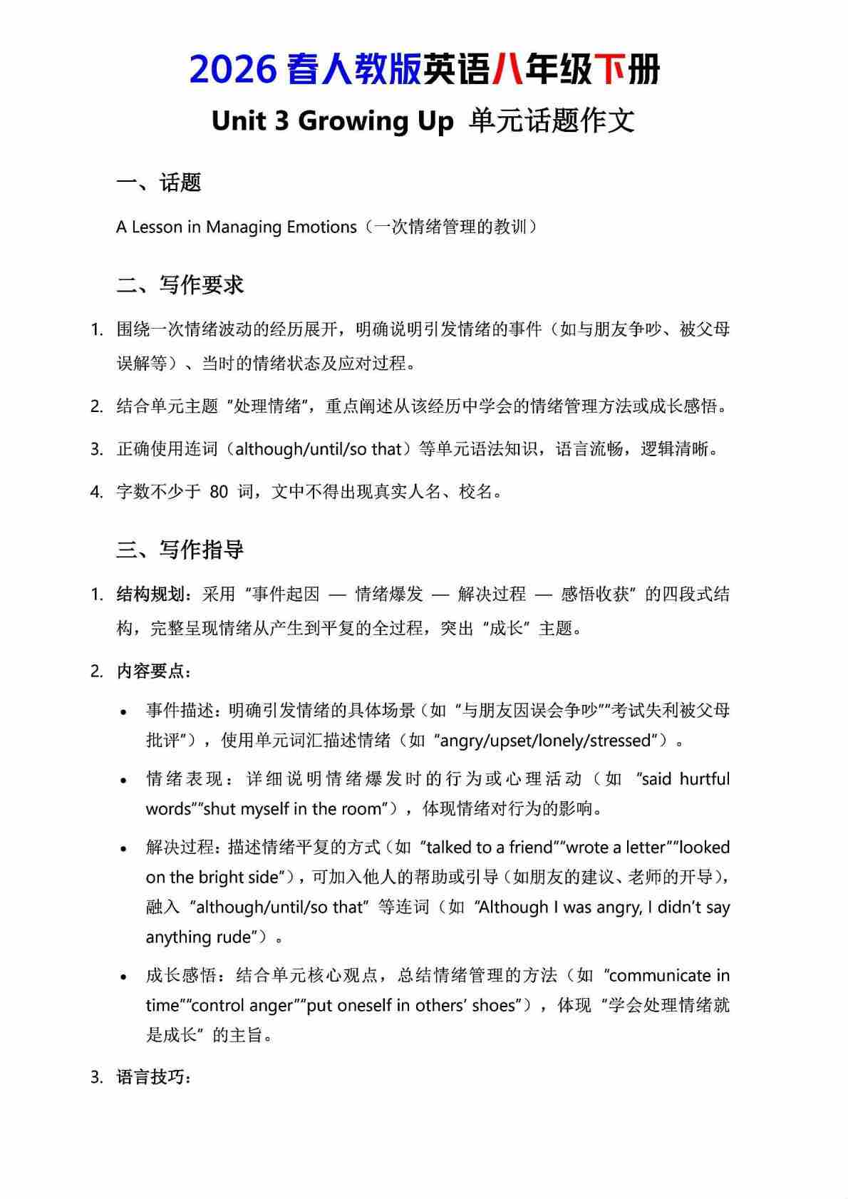 人教版八年级下册英语第三单元作文写作点拨与范文指导