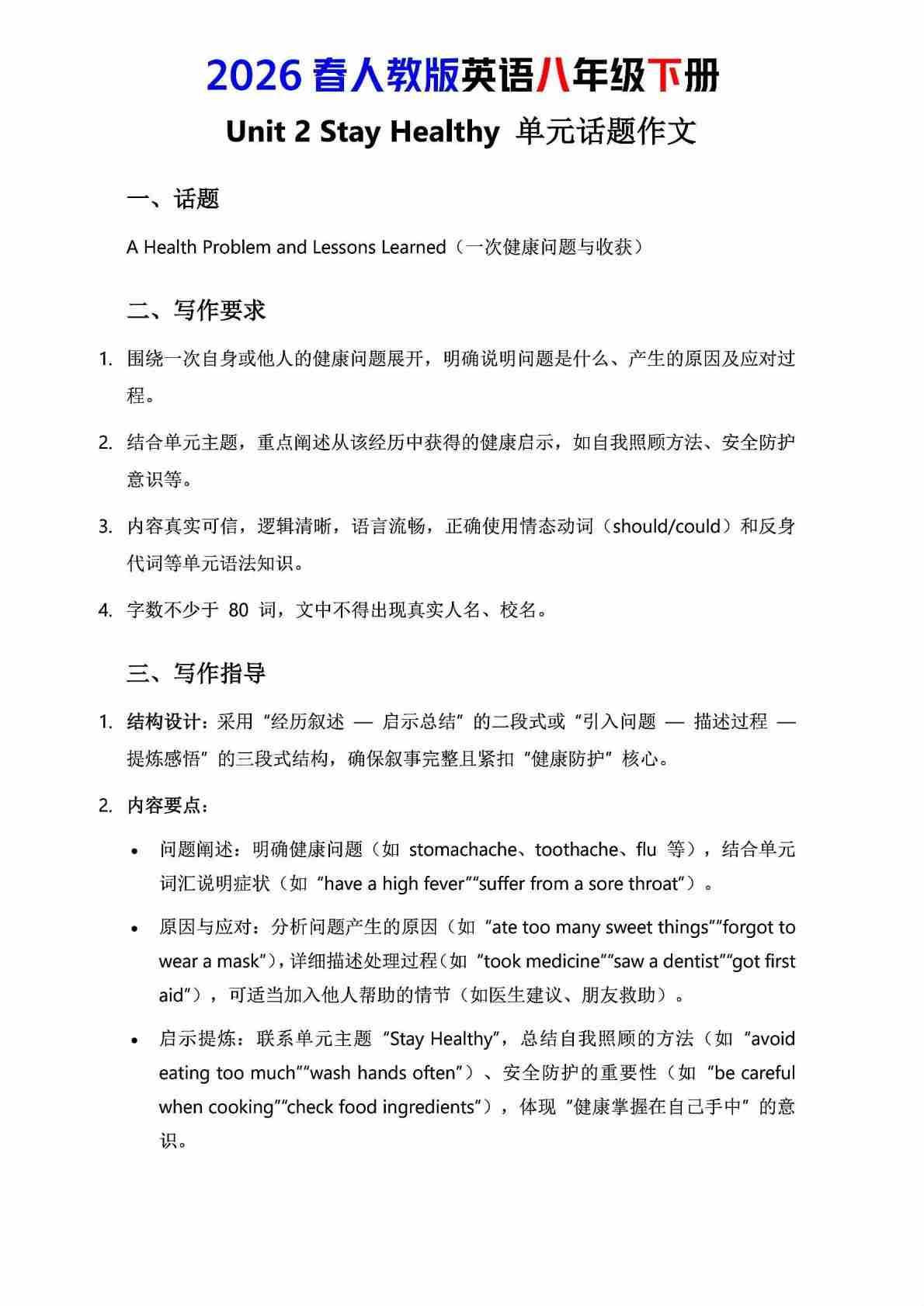人教版八年级下册英语第二单元作文写作点拨与范文指导