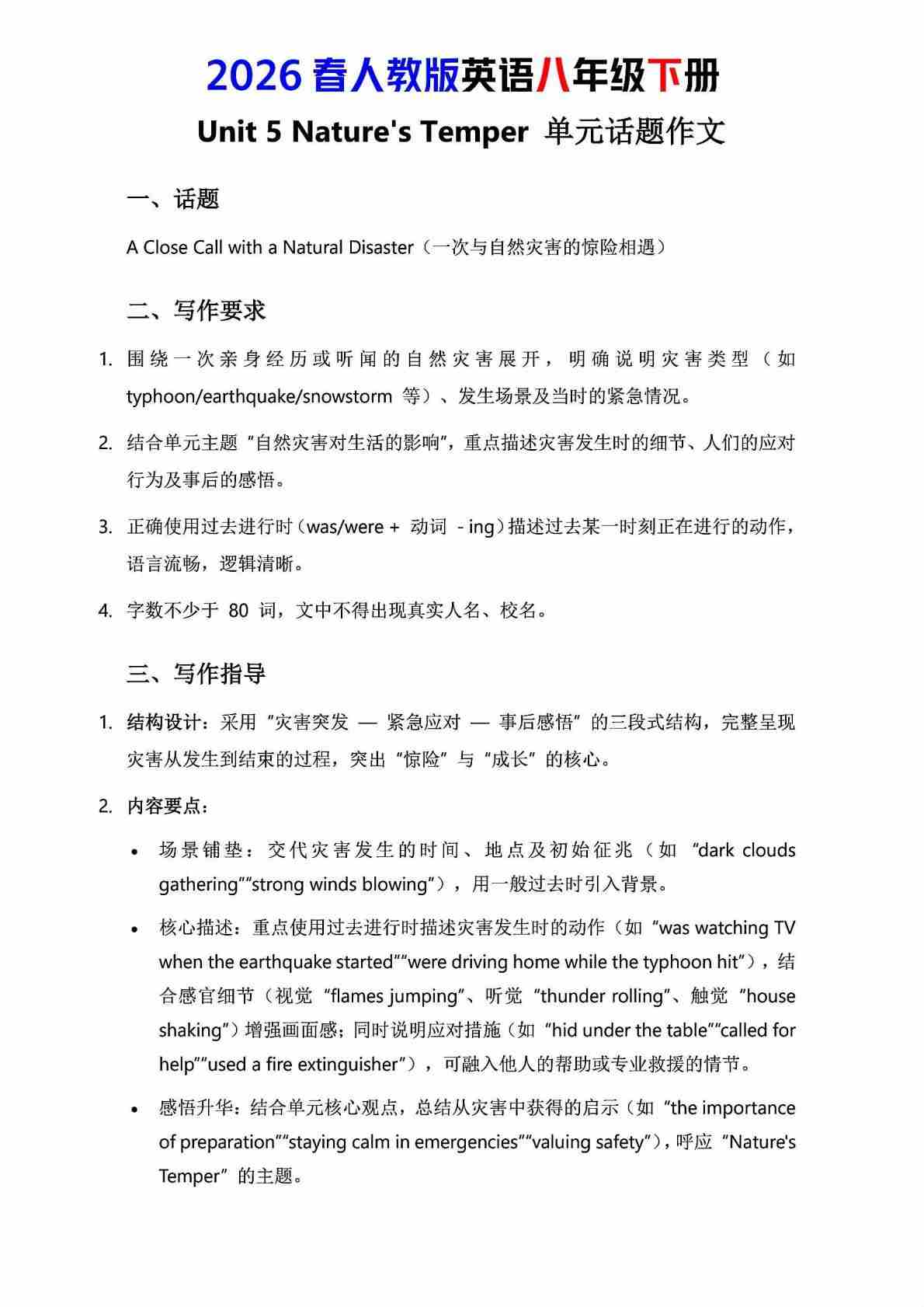 人教版八年级下册英语第五单元作文写作点拨与范文指导