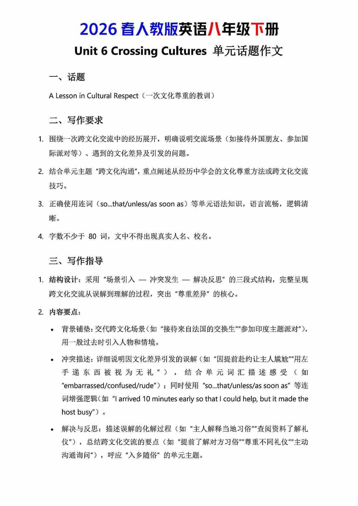 人教版八年级下册英语第六单元作文写作点拨与范文指导