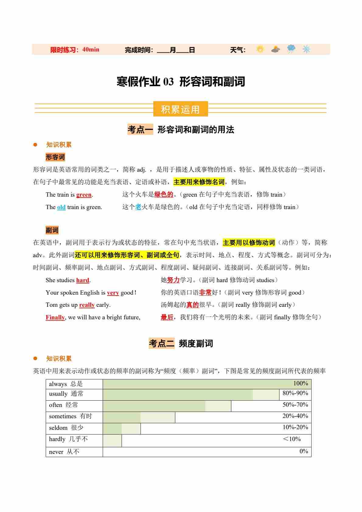 寒假作业03 形容词和副词(巩固培优)(原卷版)