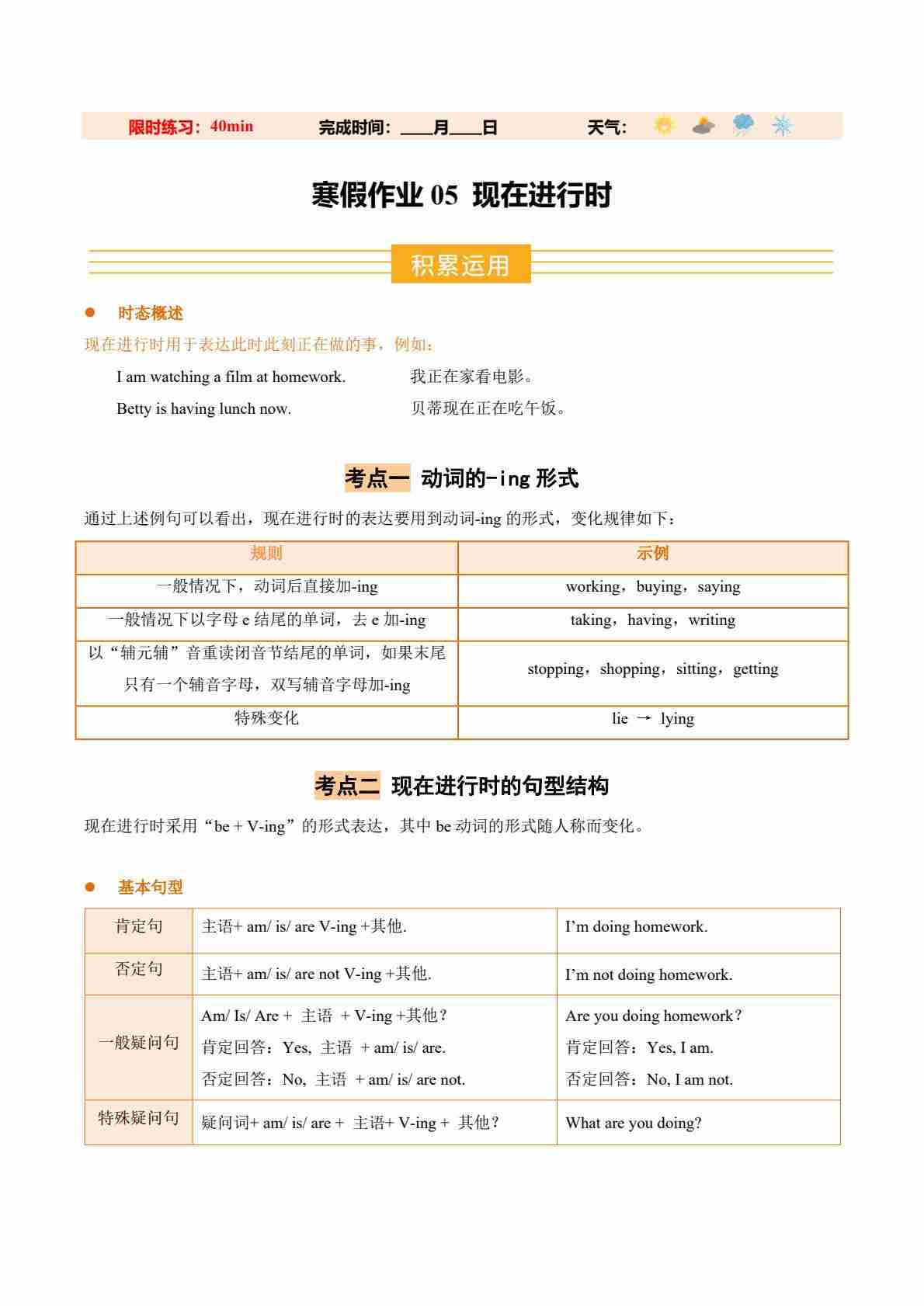 寒假作业05 现在进行时(巩固培优)(原卷版)