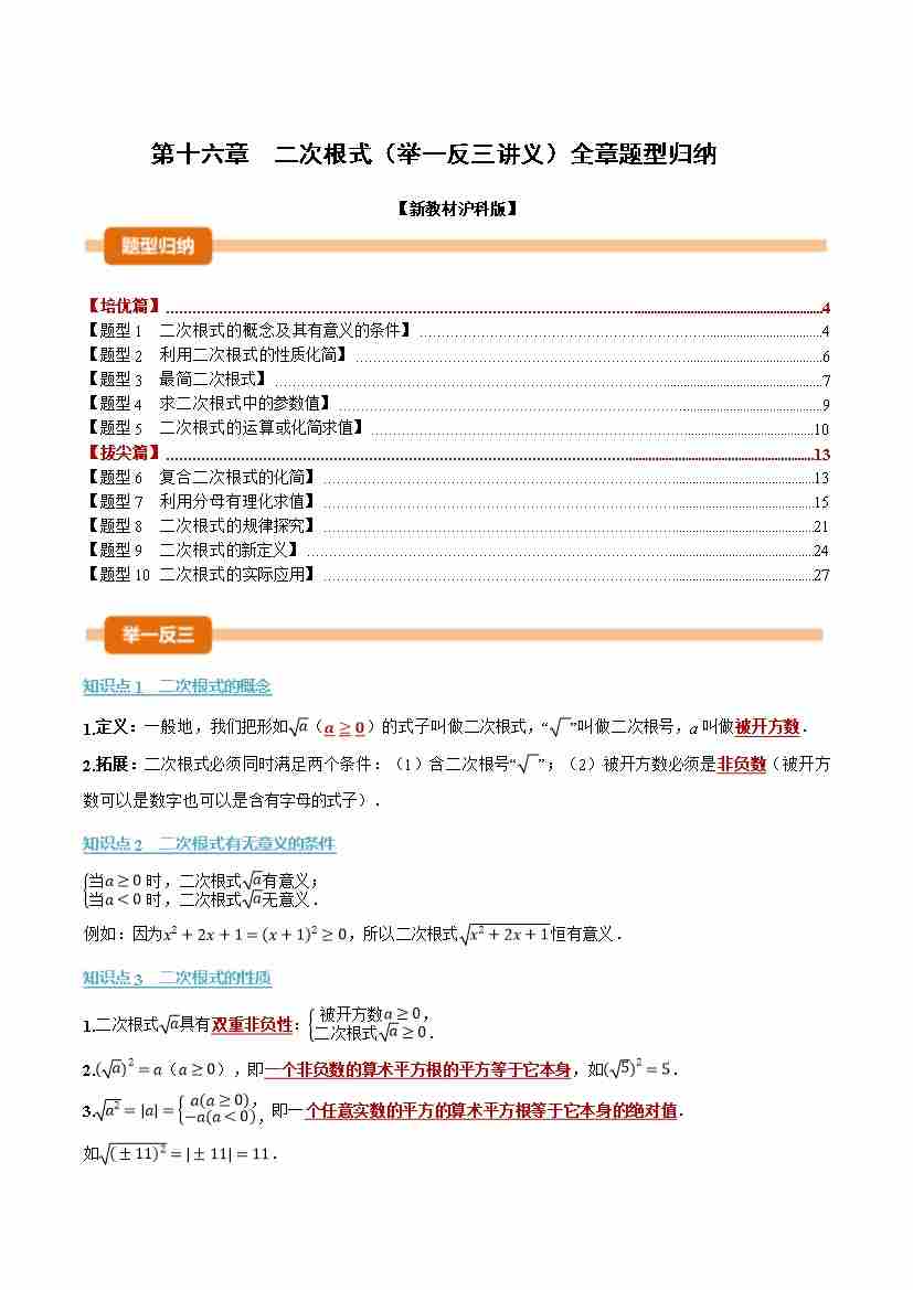 第十六章 二次根式(举一反三单元自测·拔尖卷)(试题版)