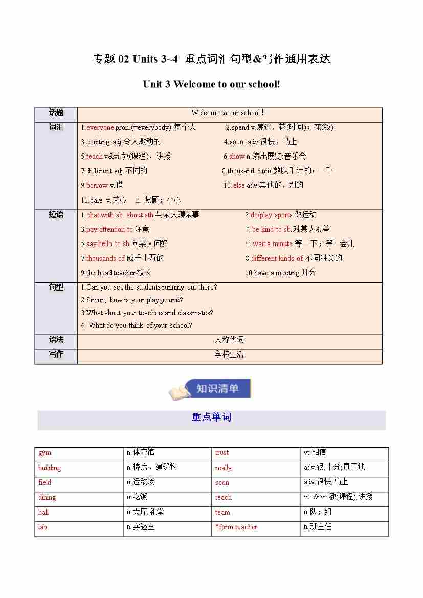 专题02 Units 3~4重点词汇句型&写作通用表达(期末复习知识清单)(背诵版)