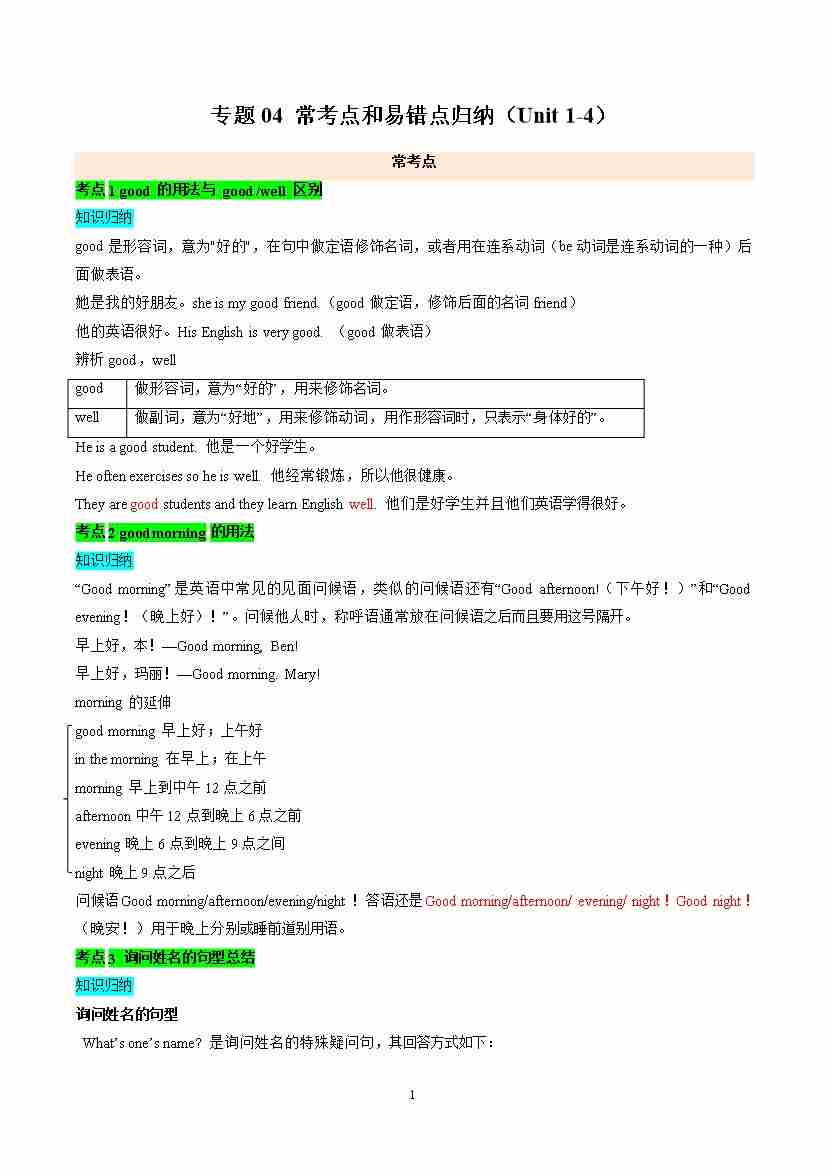专题04 常考点和易错点归纳(Unit 1-4)(期末复习讲义)(解析版)