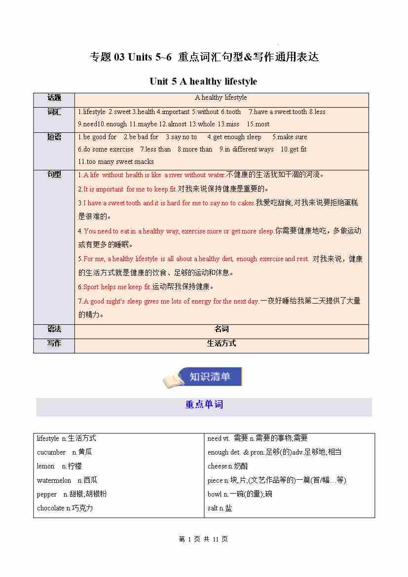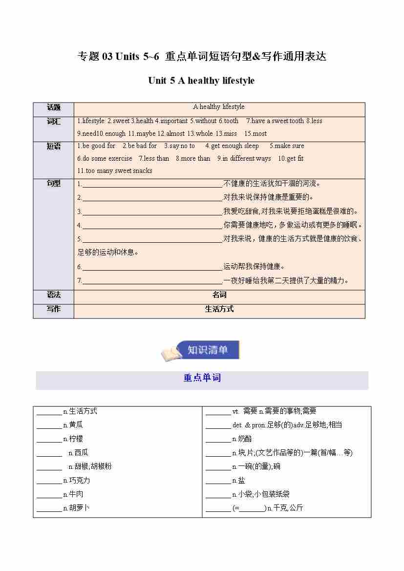 专题03 Units 5~6 重点词汇句型&写作通用表达(期末复习知识清单)(背诵版)