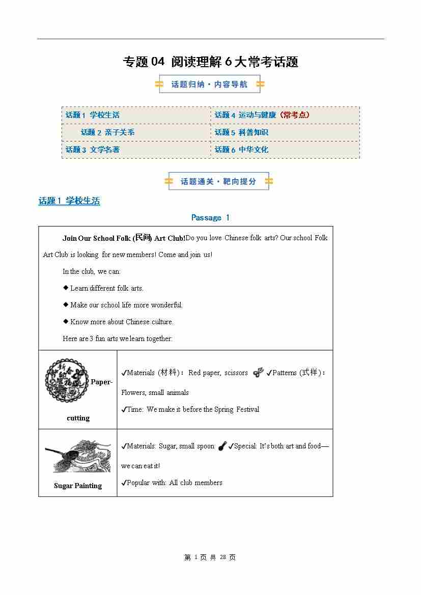 考前押题04 阅读理解6大常考话题(期末复习专项训练)(原卷版)