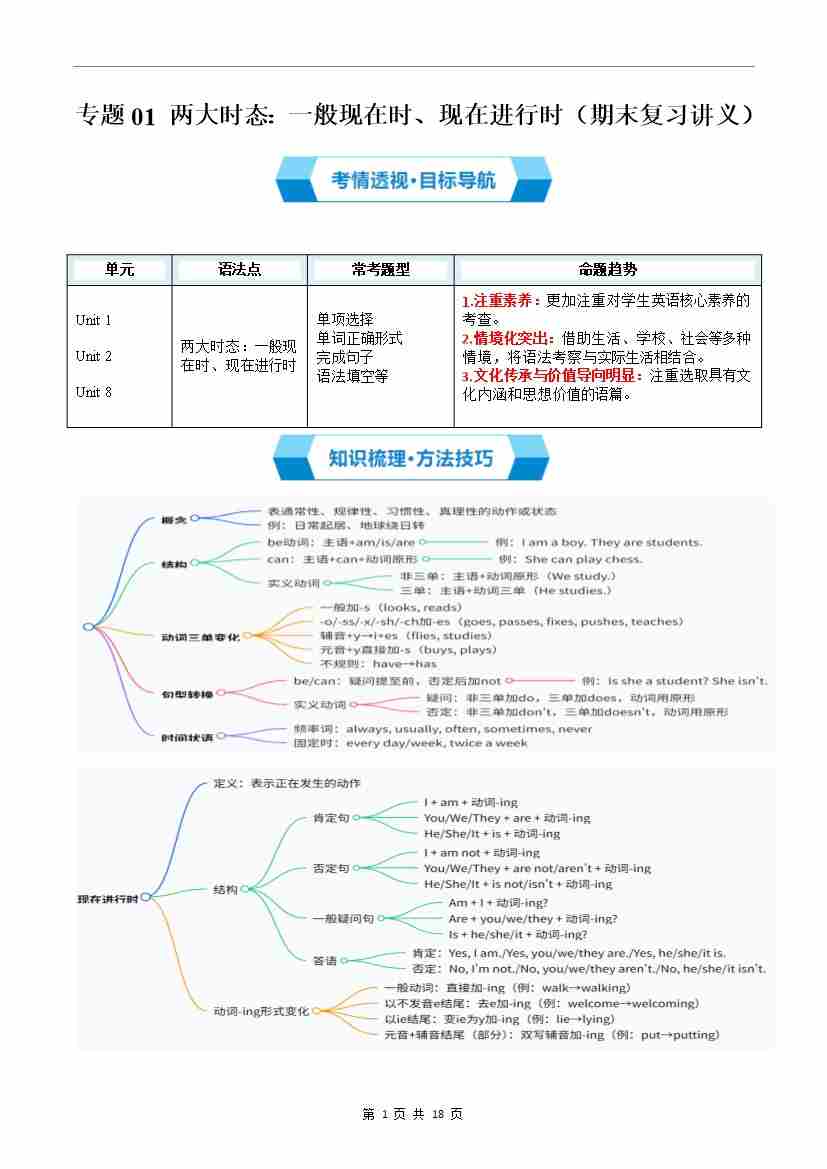 专题01 两大时态:一般现在时、现在进行时(期末复习讲义)(解析版)
