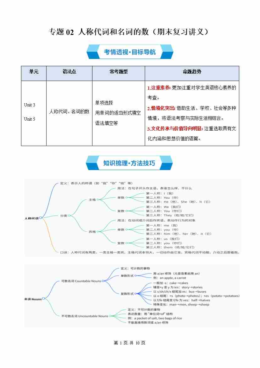 专题02 语法归纳(人称代词和名词的数)(期末复习讲义)(原卷版)
