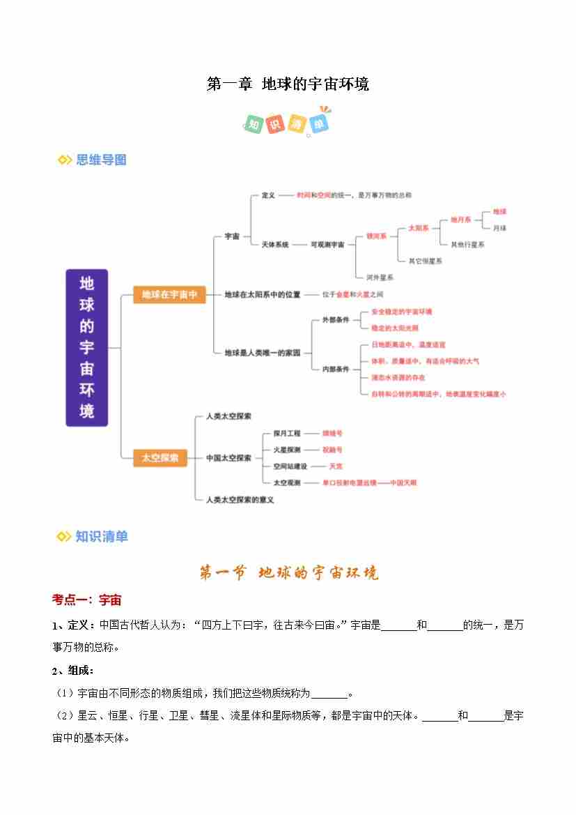 考点清单 (第4章)(考点清单)(中图版2024)(挖空版)