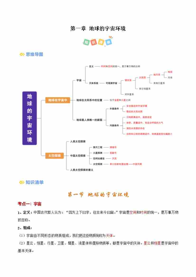 考点清单 (1-3章)(考点清单)(中图版2024)(背记版)