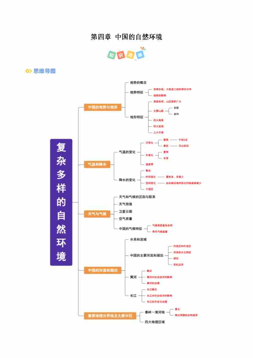 考点清单 (第4章)(考点清单)(中图版2024)(答案版)