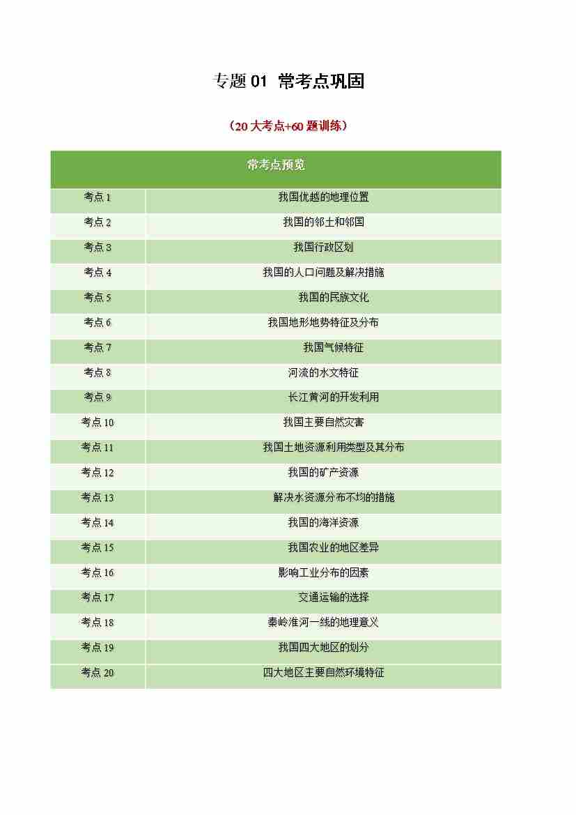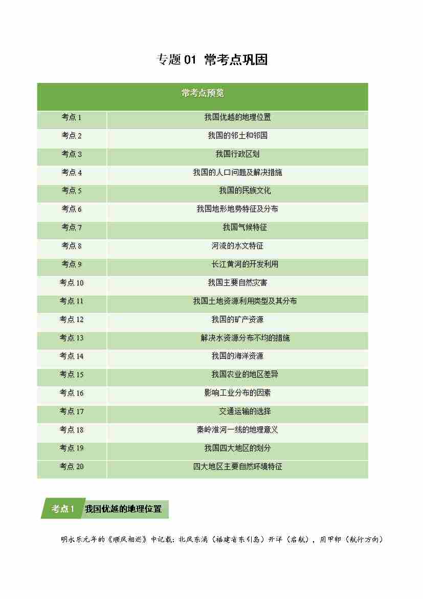 期中知识清单 七年级地理上学期(一~三章)(新湘教版)(学生版)