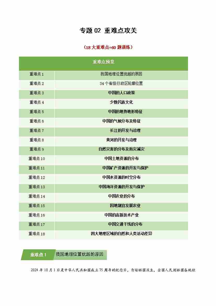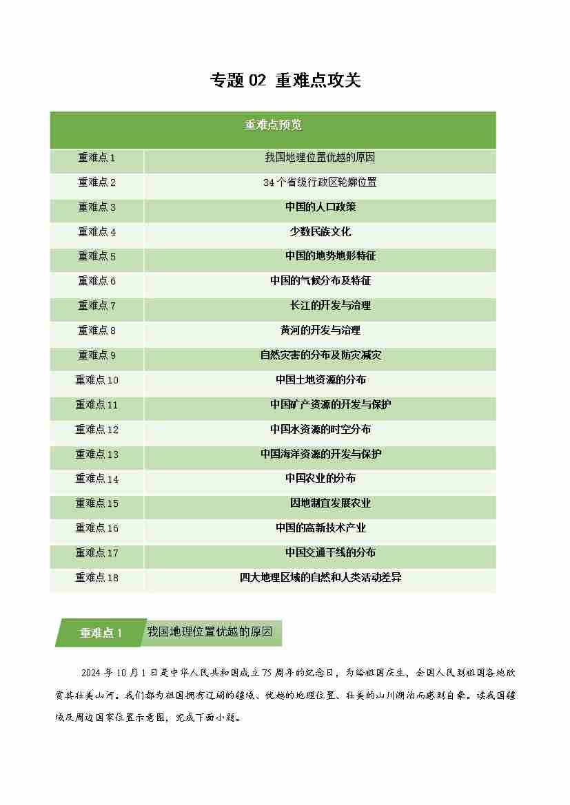 湘教版专题02 重难点攻关(期末专项训练)(学生版)