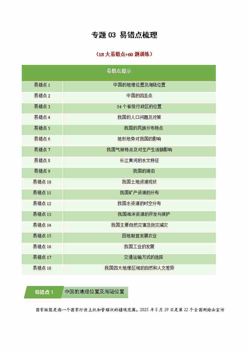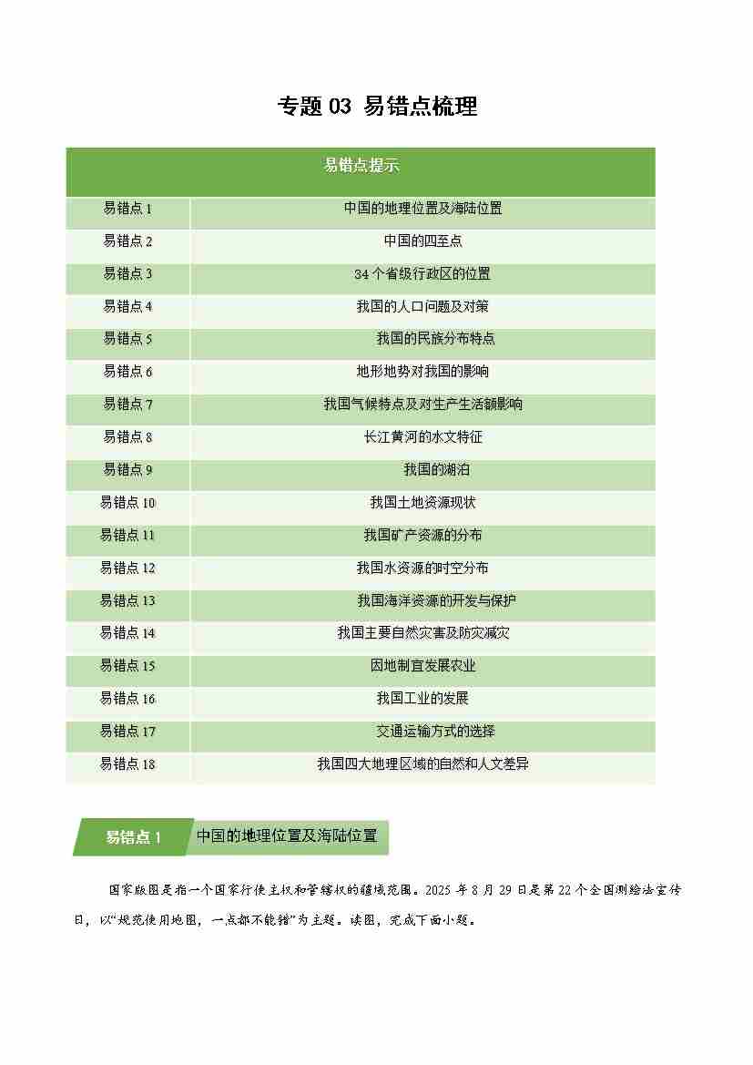 湘教版专题03 易错点梳理(期末专项训练)(学生版)