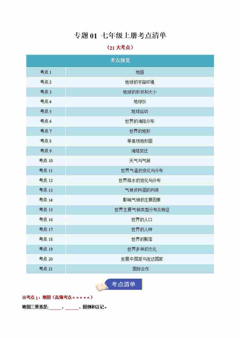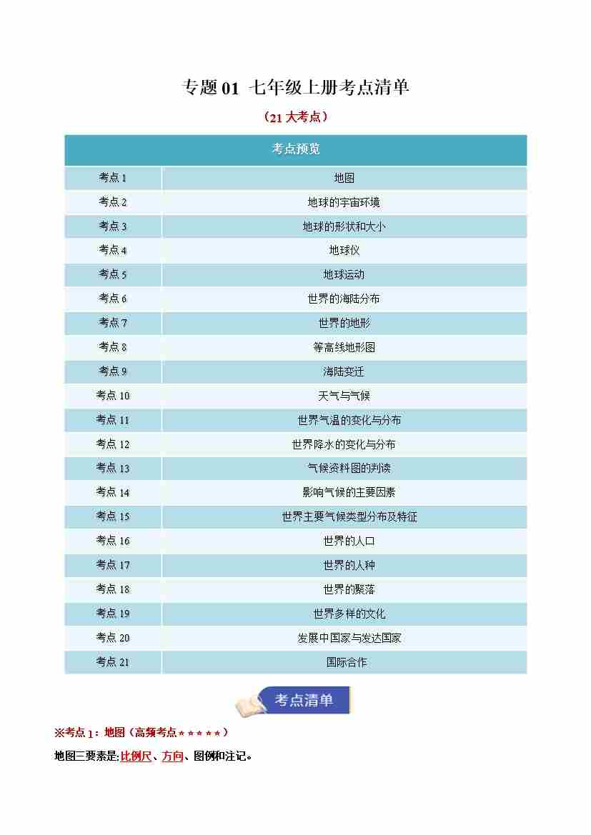 专题01 七年级上册考点清单(教师版)