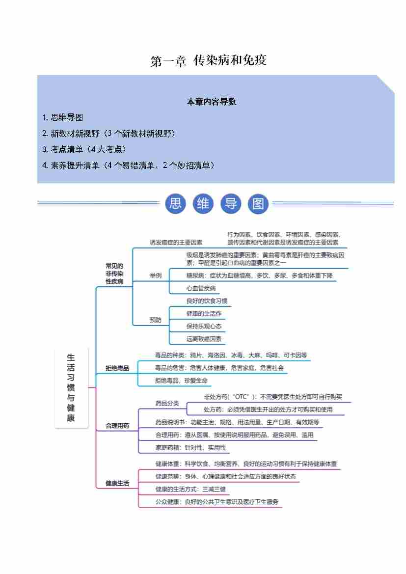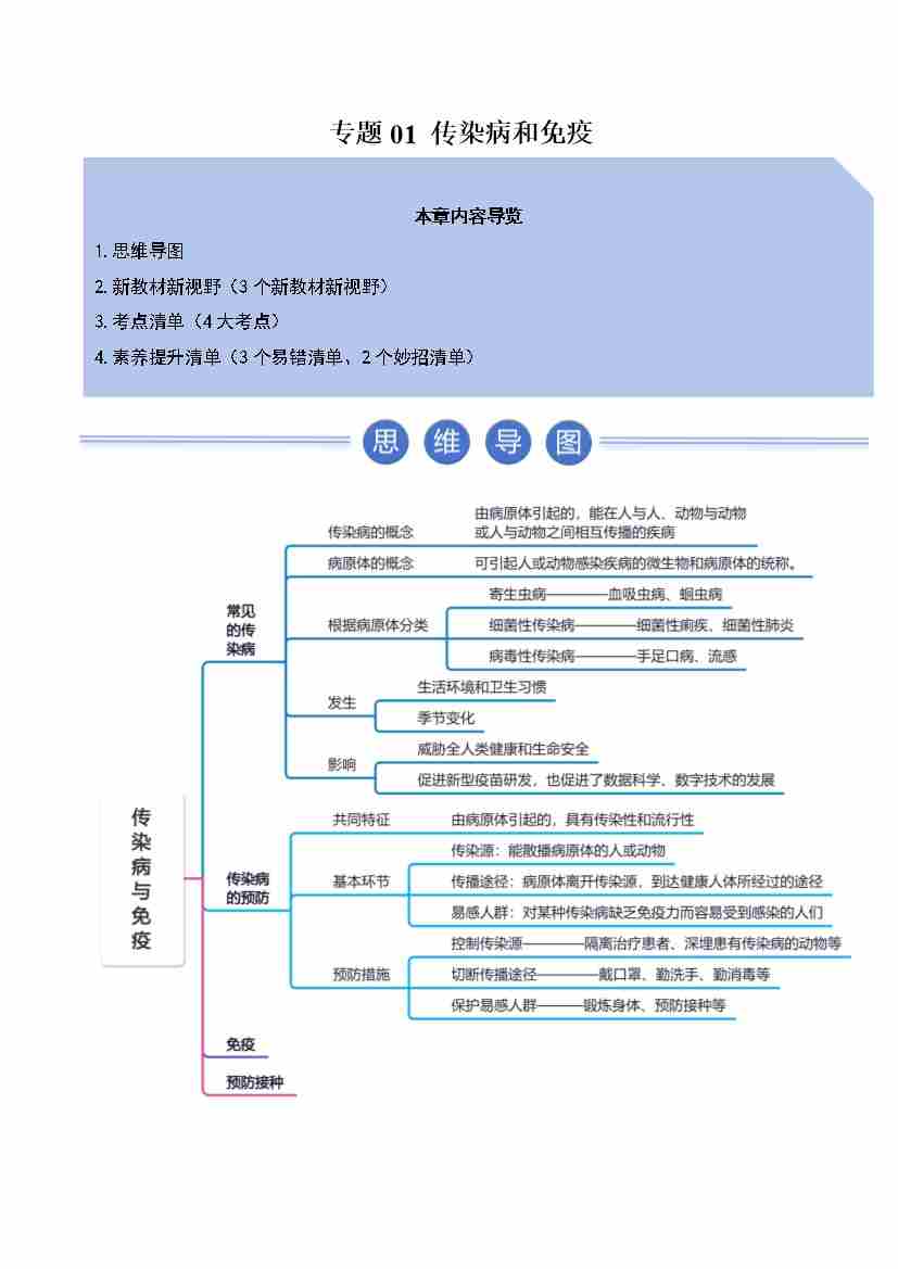 专题01 传染病和免疫(期末知识清单)(学生版)