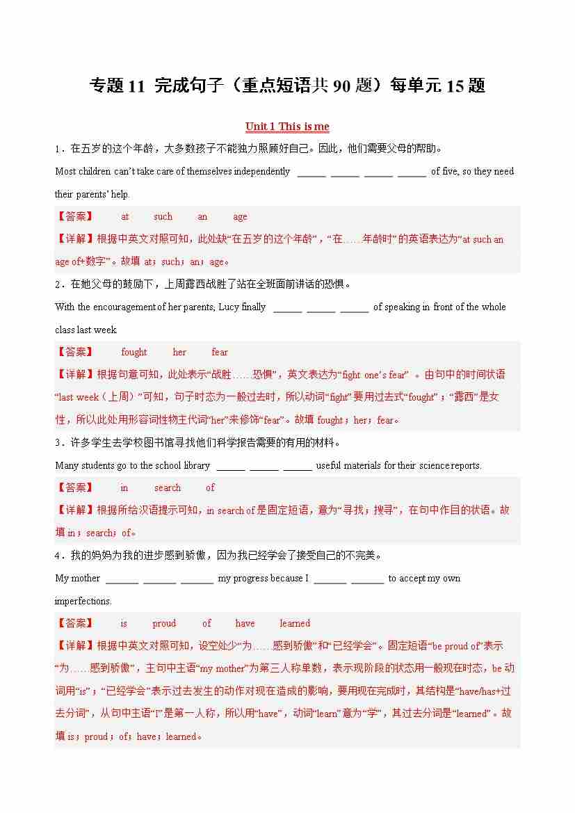 专题11 完成句子(重点短语共90题)(解析版)