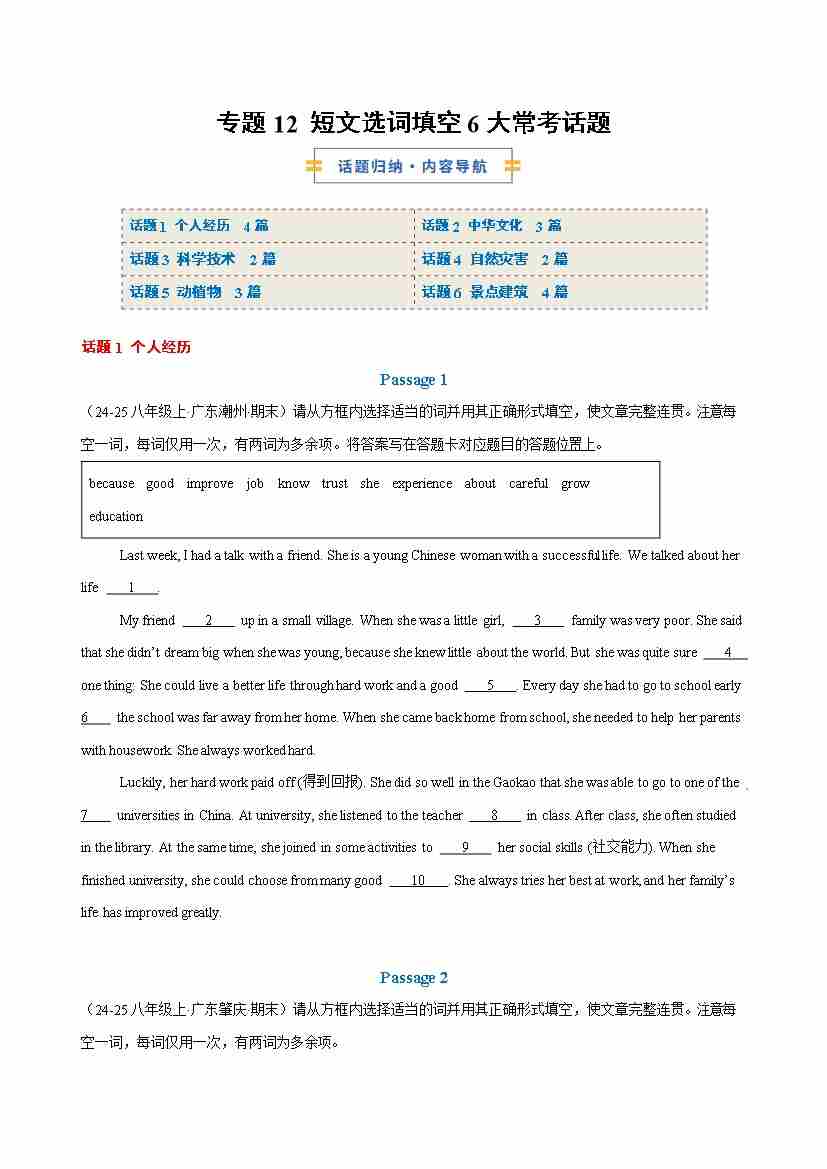 专题12 短文选词填空6大常考话题(原卷版)