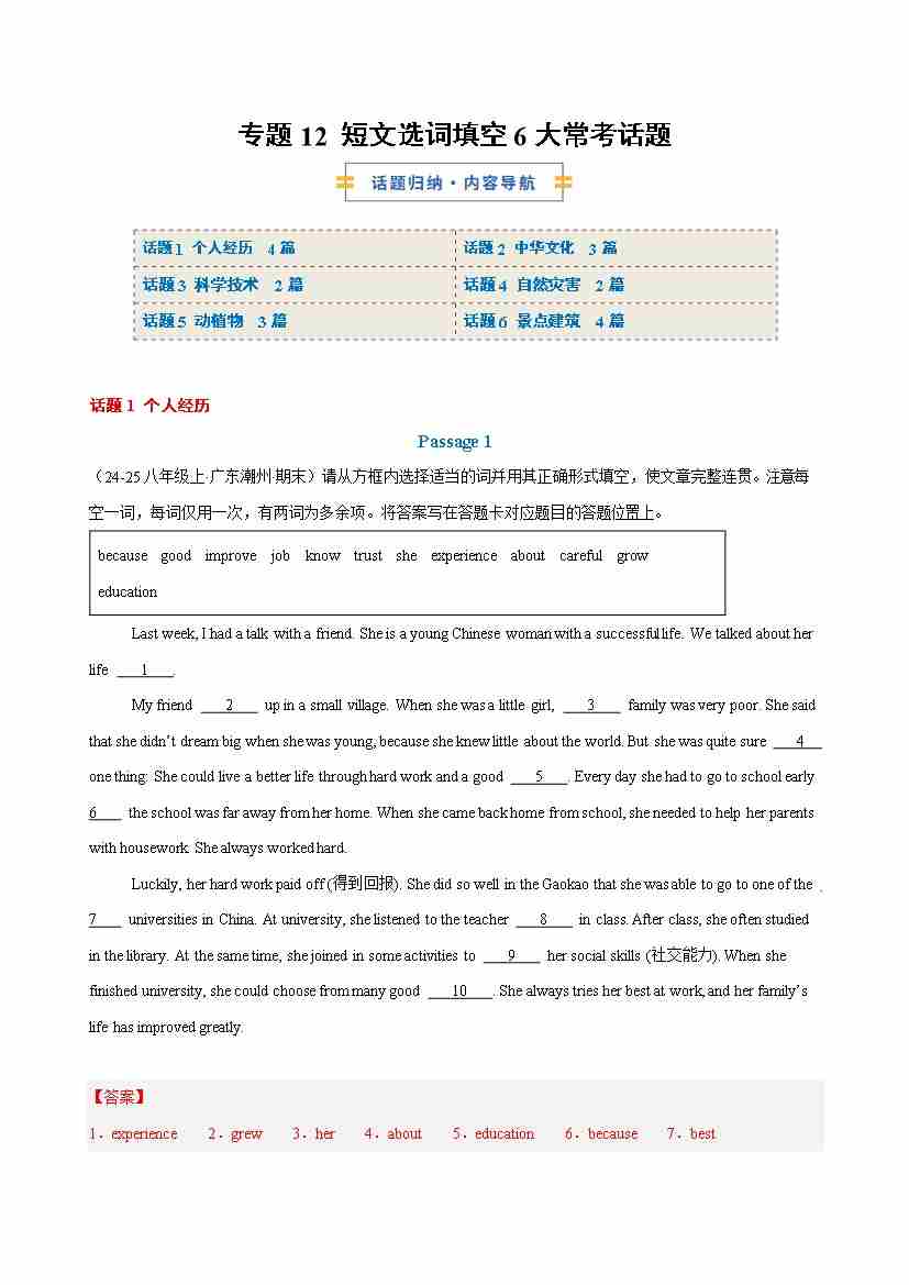 专题12 短文选词填空6大常考话题(解析版)