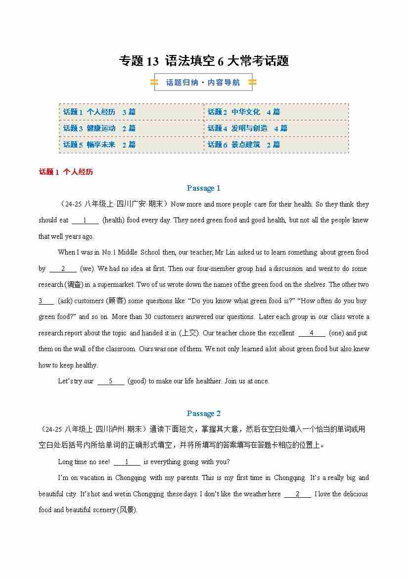 专题13 语法填空6大常考话题(原卷版)