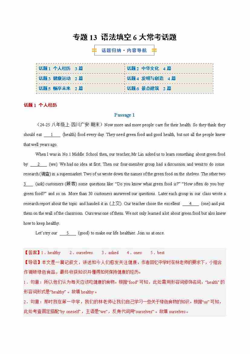 专题13 语法填空6大常考话题(解析版)