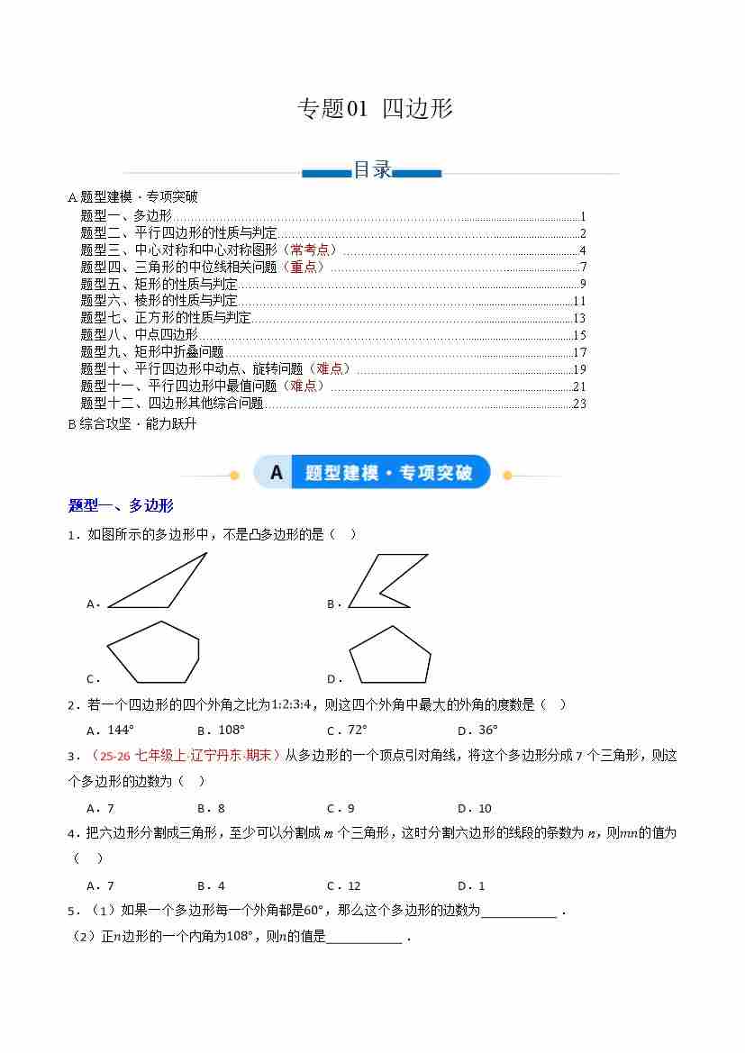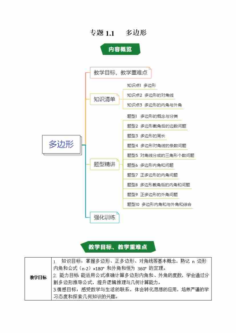专题1.1 多边形(3大考点10大题型强化训练)(高效培优讲义)(原卷版)