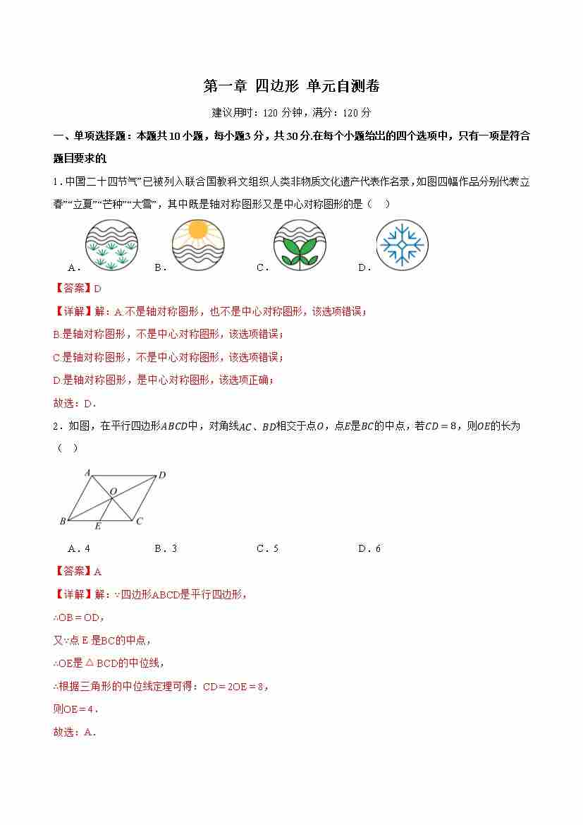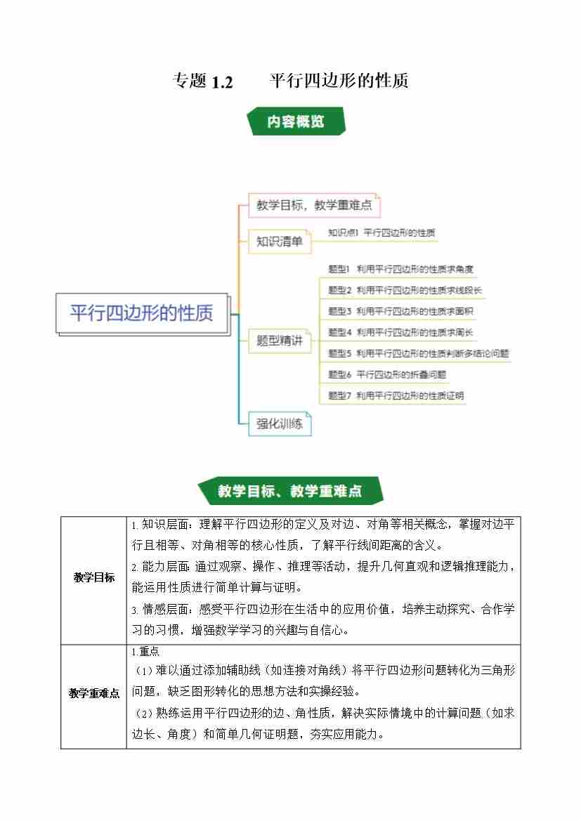 专题1.2 平行四边形的性质(1大考点7大题型强化训练)(高效培优讲义)(解析版)