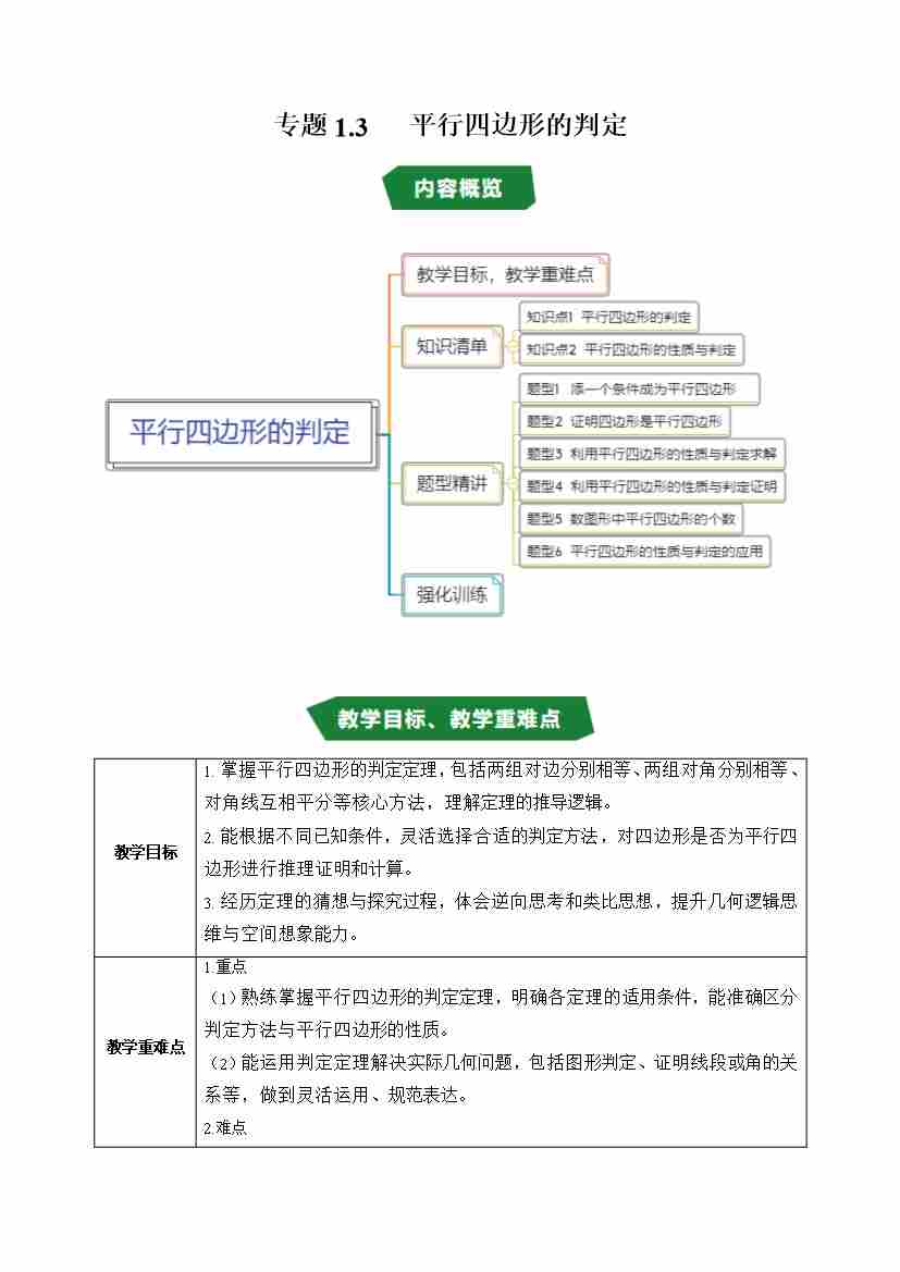 专题1.3 平行四边形的判定(2大考点6大题型强化训练)(高效培优讲义)(解析版)
