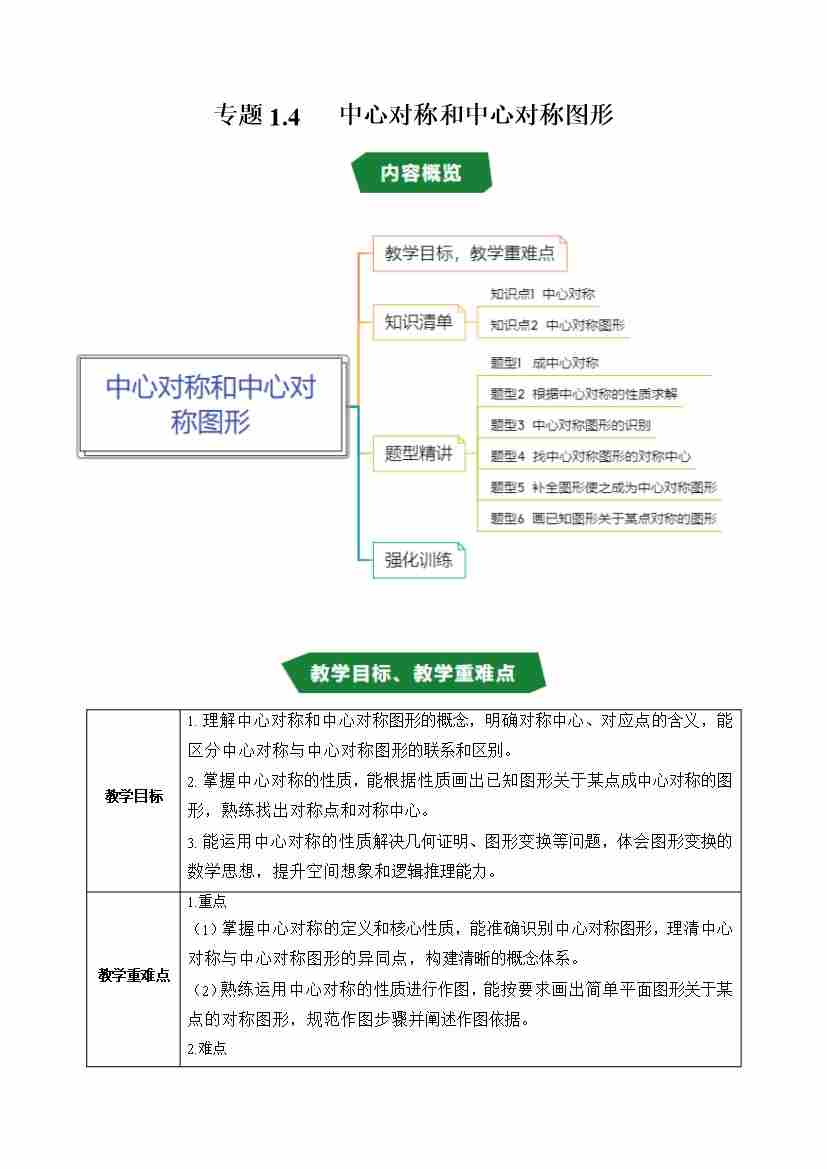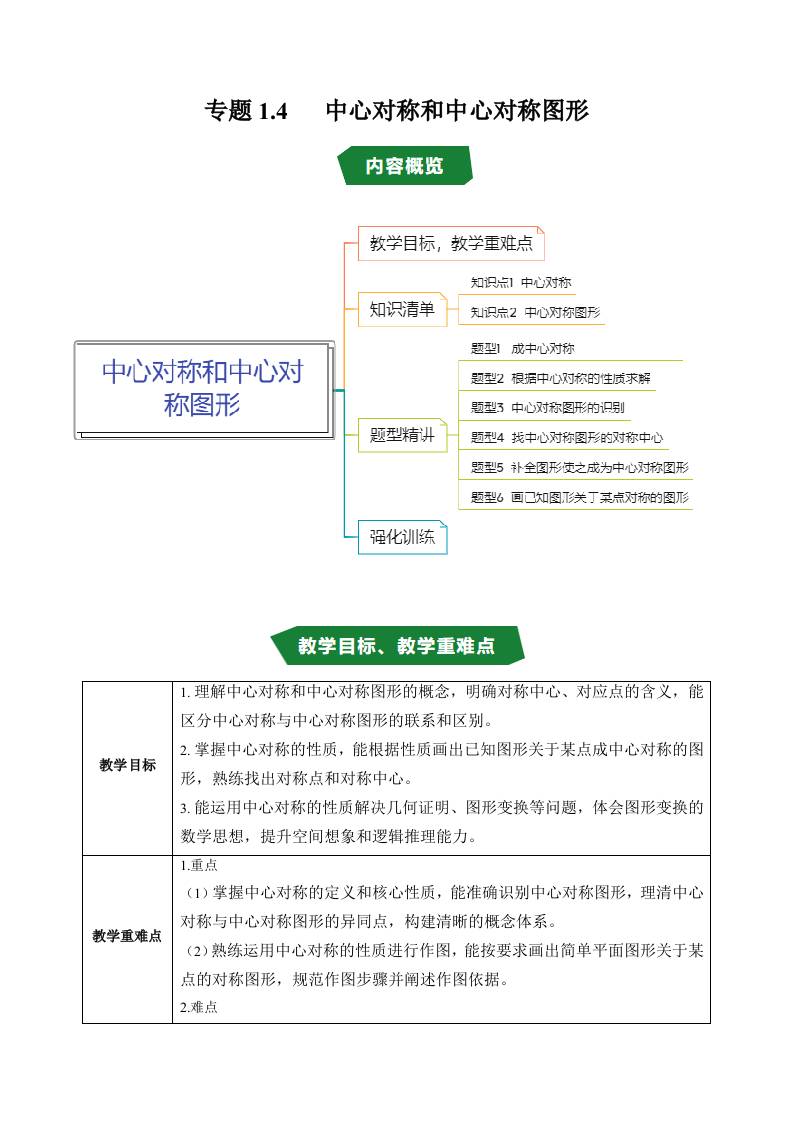 专题1.4 中心对称和中心对称图形(2大考点6大题型强化训练)(高效培优讲义)(解析版)