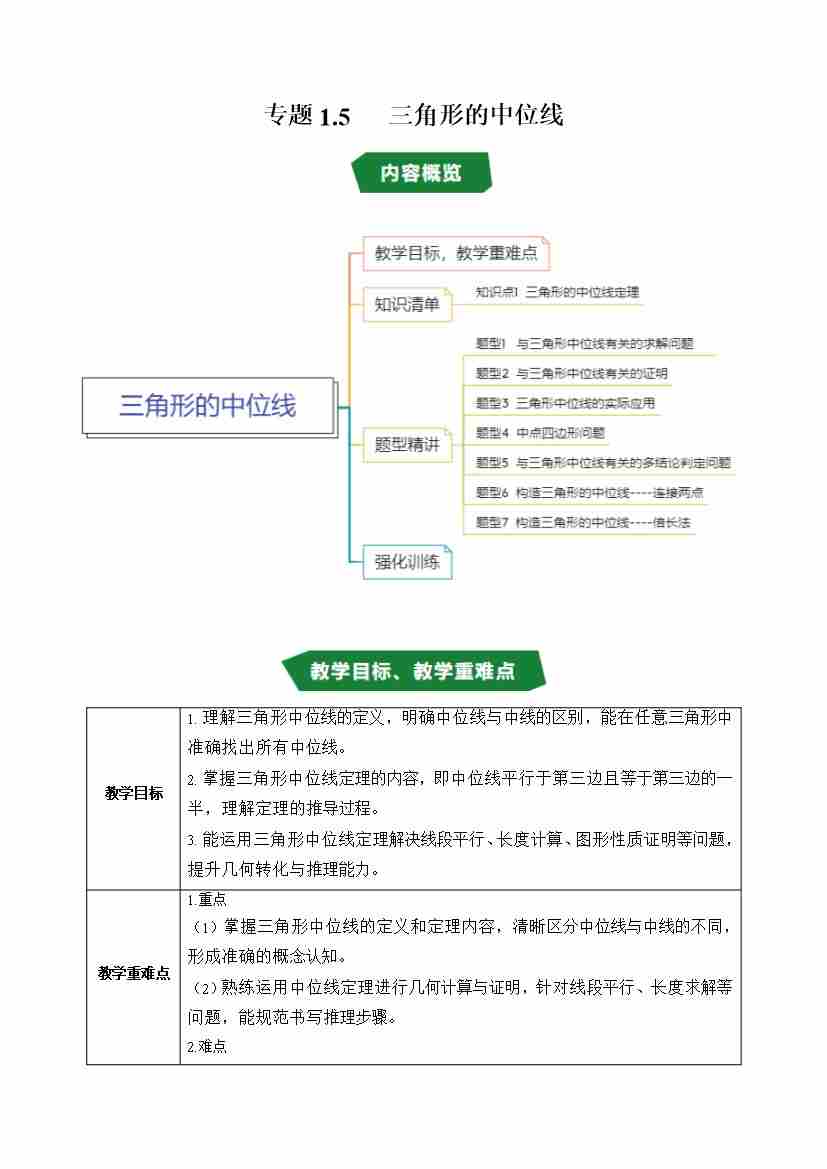专题1.5 三角形的中位线(1大考点7大题型强化训练)(高效培优讲义)(原卷版)