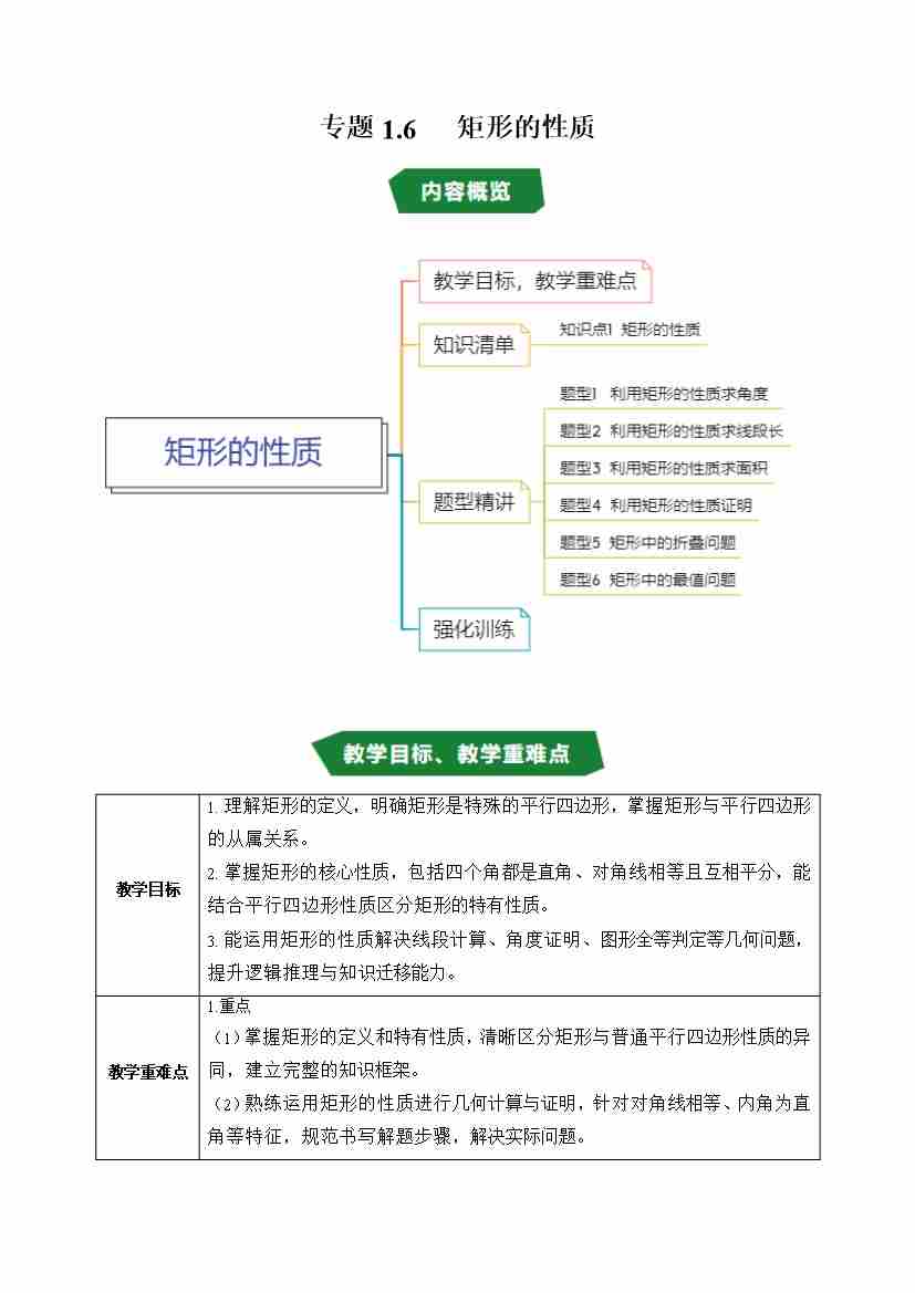专题1.6 矩形的性质(1大考点6大题型强化训练)(高效培优讲义)(原卷版)