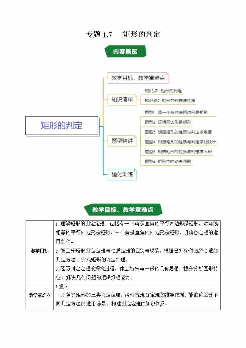 专题1.7 矩形的判定(2大考点6大题型强化训练)(高效培优讲义)(解析版)