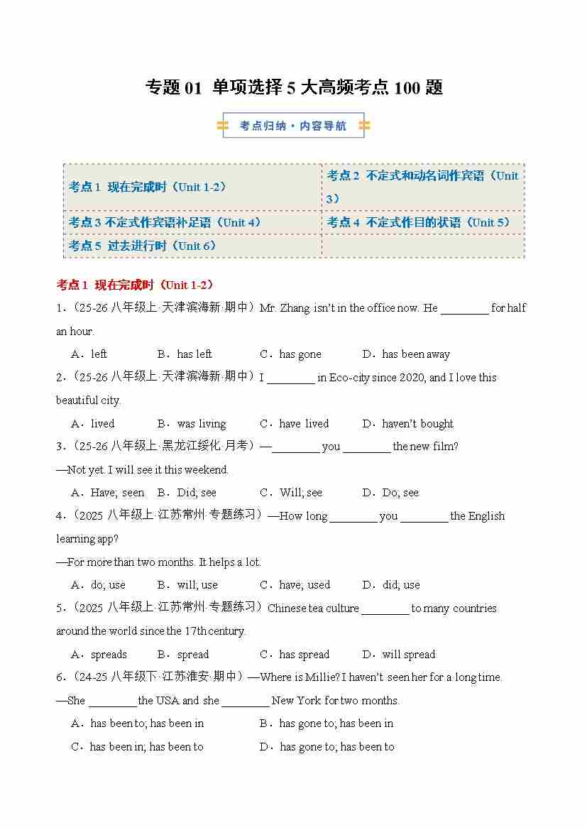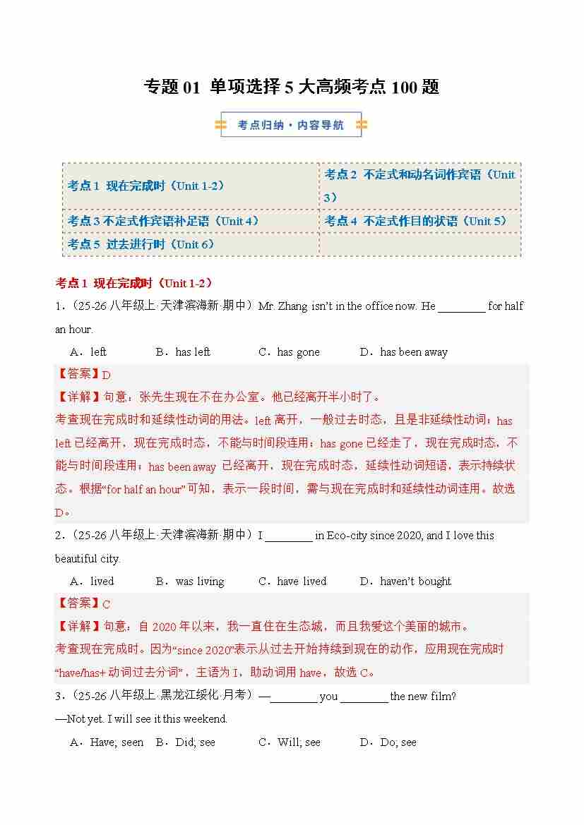 专题01 单项选择5大高频考点(解析版)