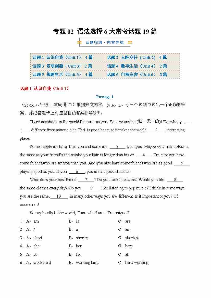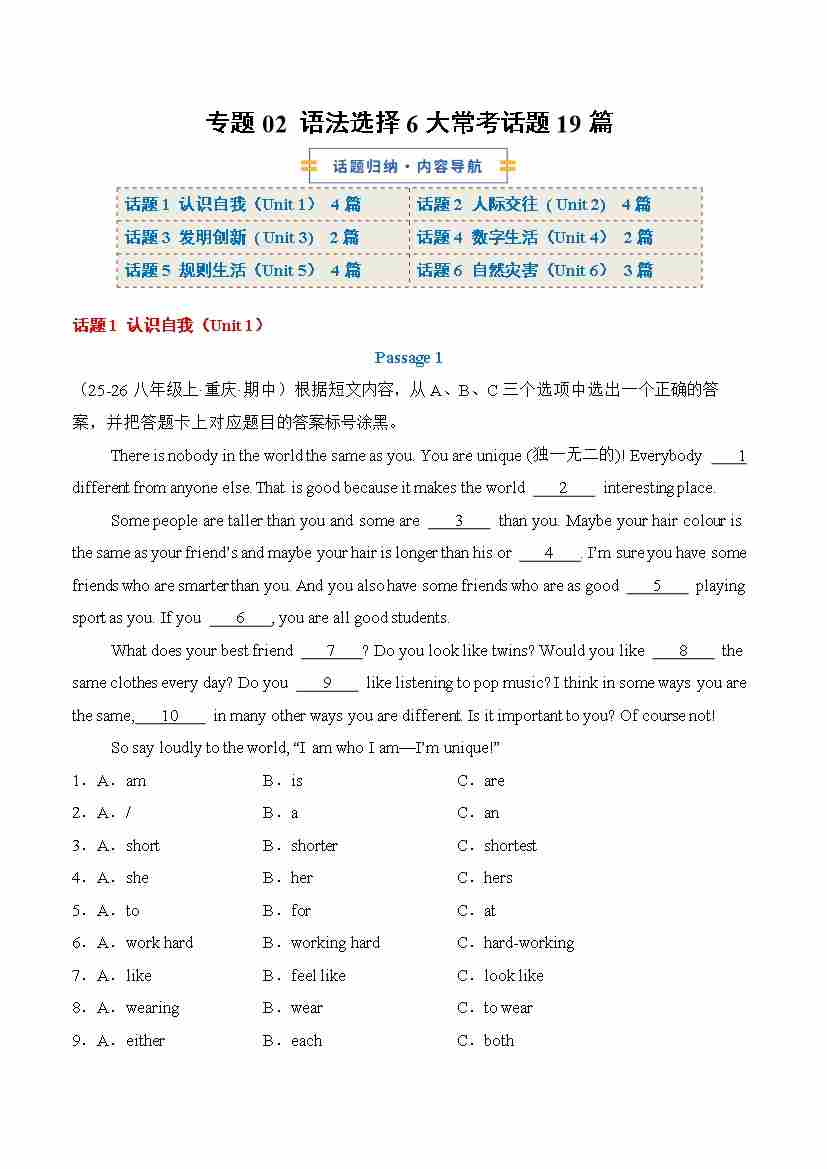 专题02 语法选择6大常考话题(原卷版)