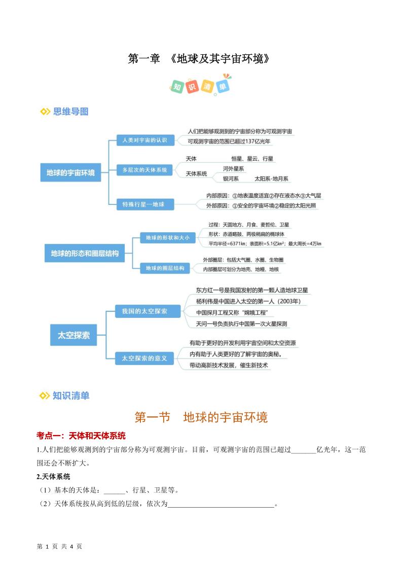 第1章《地球及其宇宙环境》(考点清单)(挖空版)