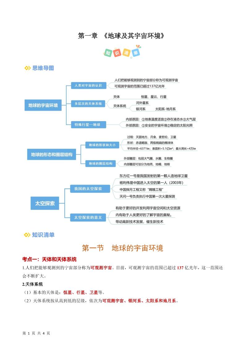 第1章《地球及其宇宙环境》(考点清单)(背记版)
