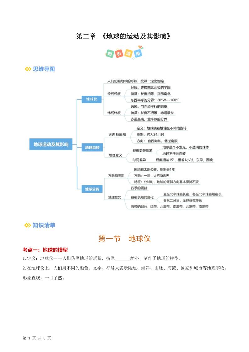 第2章《地球的运动及其影响》(考点清单)(挖空版)