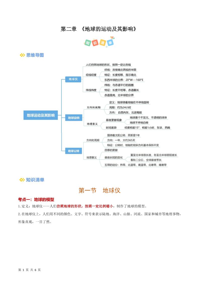 第2章《地球的运动及其影响》(考点清单)(背记版)