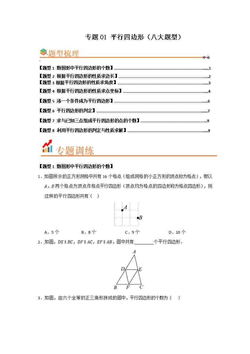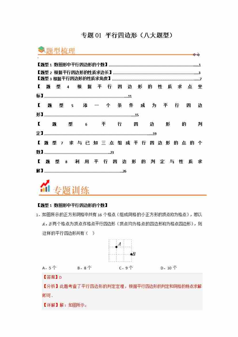 专题01 平行四边形(八大题型)(题型训练易错精练)(原卷版)