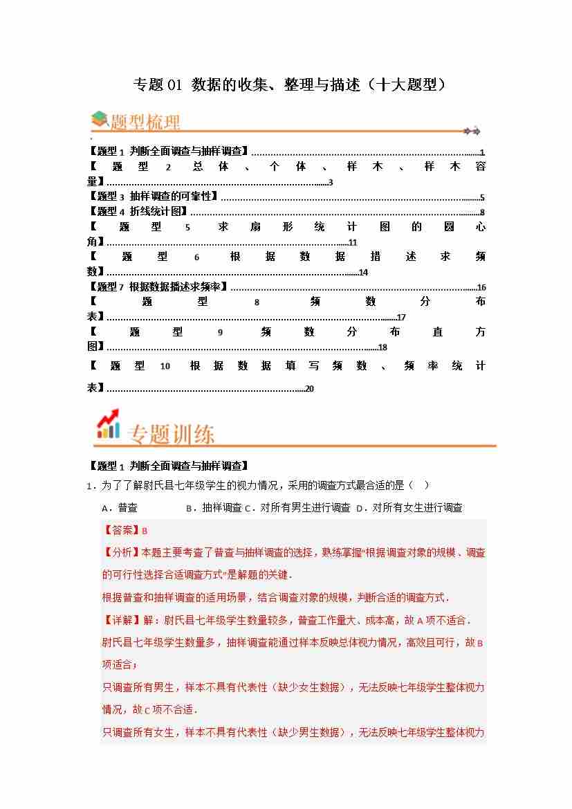 专题01 数据的收集、整理与描述(十大题型)(题型训练易错精练)(解析版)