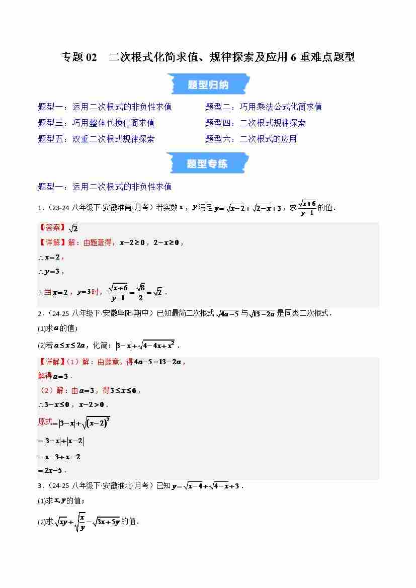 专题02 二次根式化简求值、规律探索及应用6重难点题型(高效培优专项训练)(解析版)