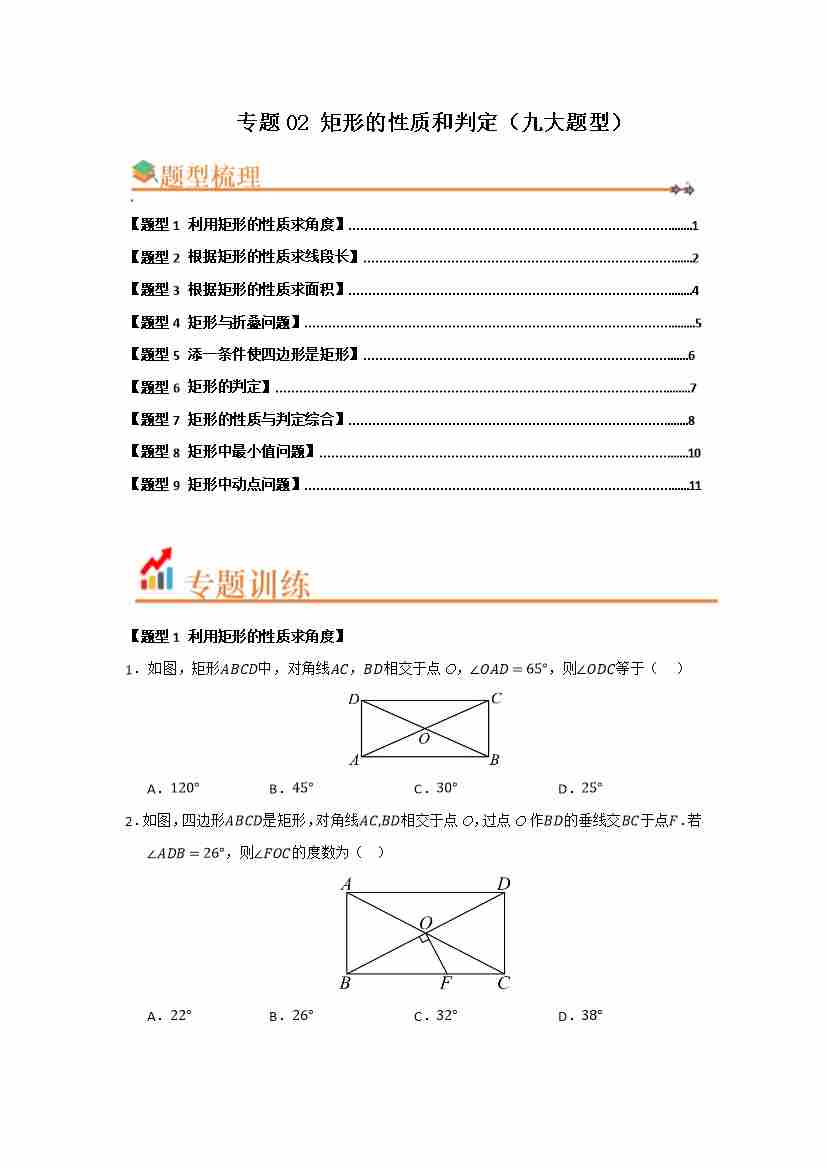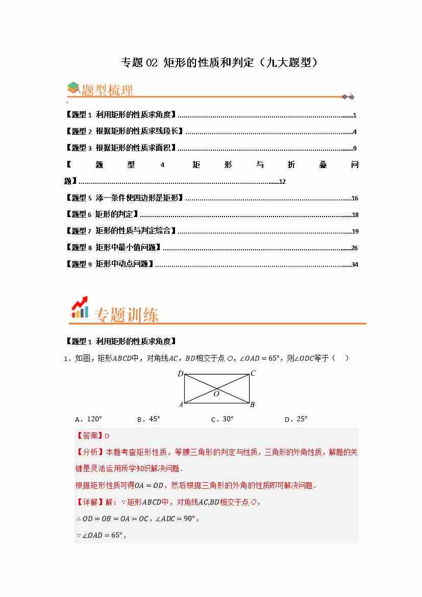 专题02 矩形的性质和判定(九大题型)(题型训练易错精练)(原卷版)