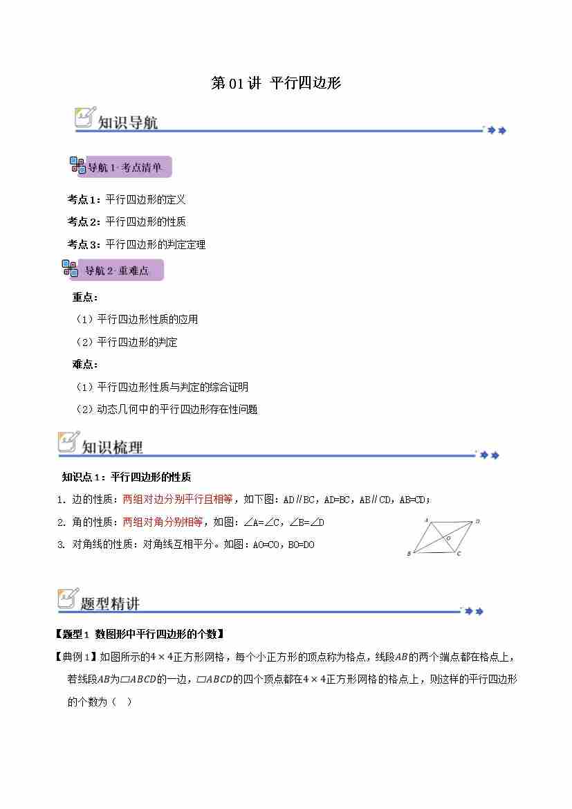 第01讲 平行四边形(知识解读例题精讲随堂检测)(解析版)