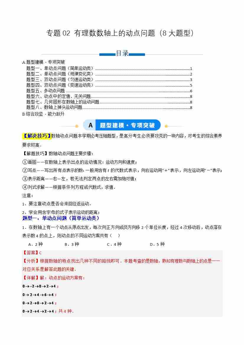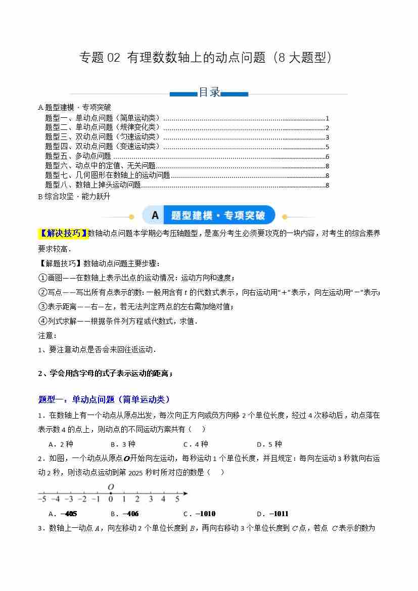 专题02 有理数数轴上的动点问题8大题型(专项训练)(学生版)